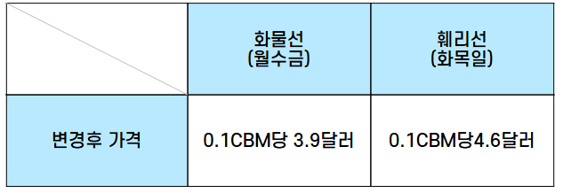 변경후 가격: 0.1CBM당 4.6달러